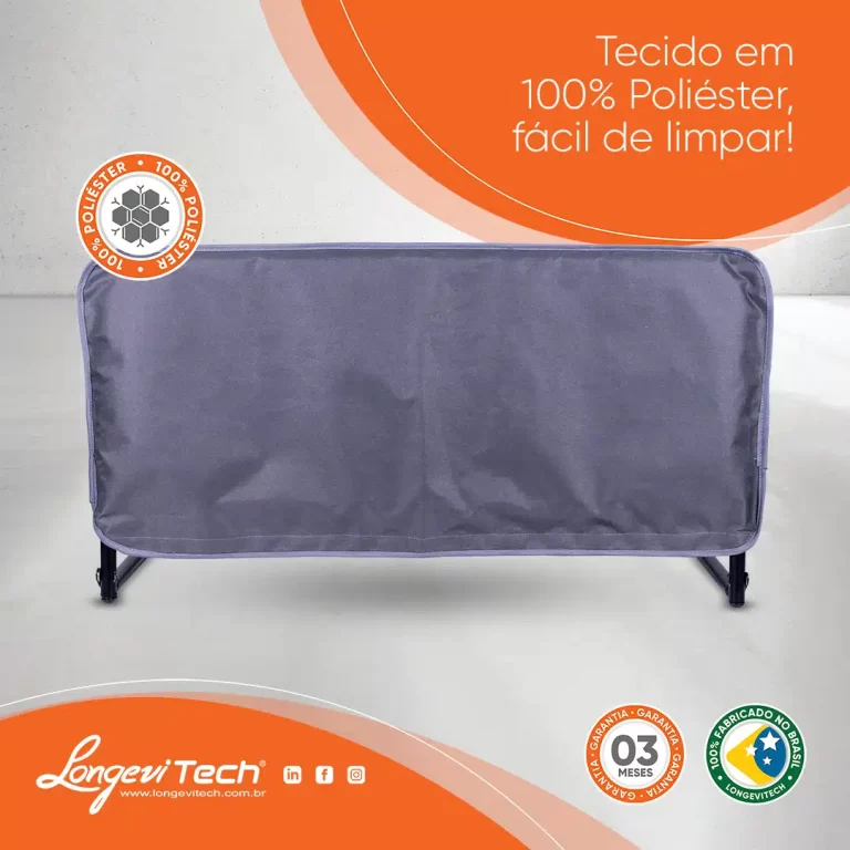funciona em todos os tipos de camas, além de ser dobrável e ocupar pouco espaço.