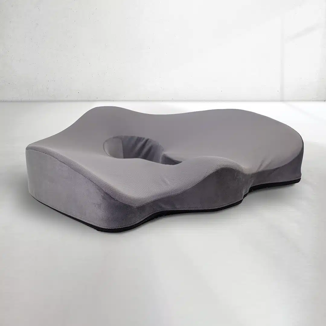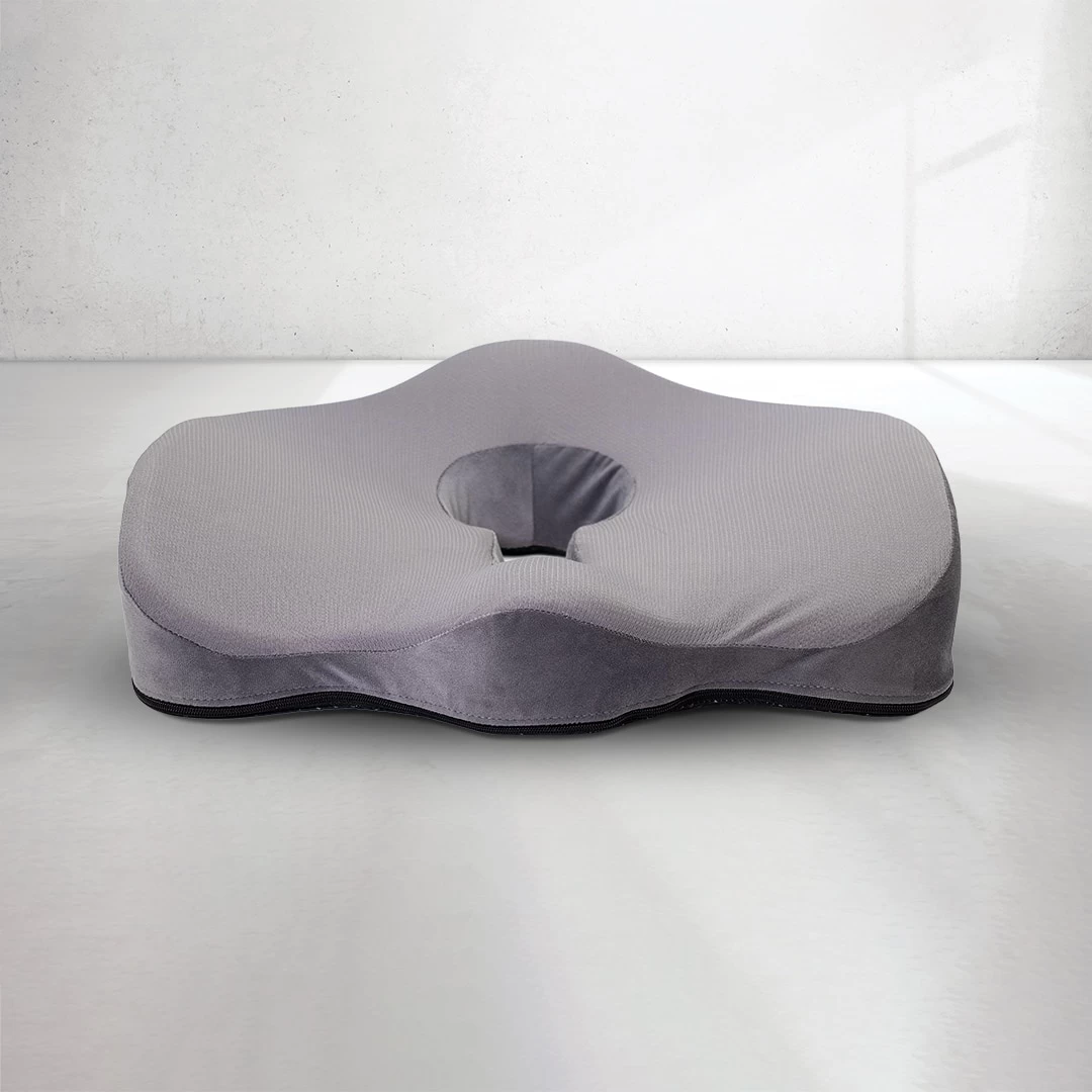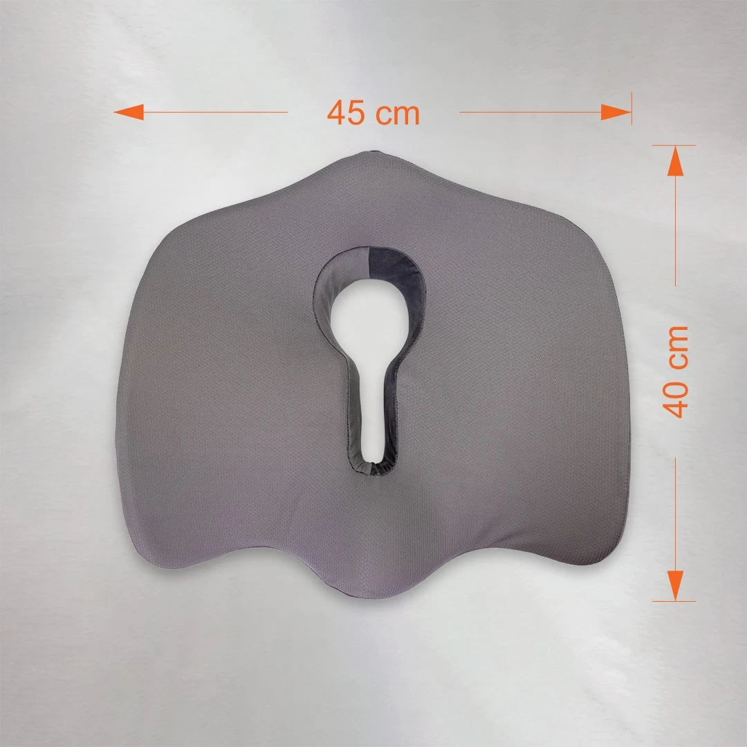 Indicação: Possui uma área maior que as almofadas convencionais, que permite que a pressão seja dissipada uniformemente, proporcionando mais conforto e melhora da postura. Seu formato anatômico se ajusta perfeitamente aos contornos da região do quadril, além de ter um recorte interior que ajuda na prevenção de pontos de pressão, dores na região do cóccix e na região glútea.